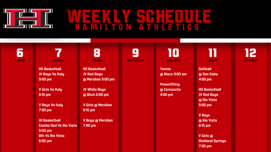 Hamilton High School Weekly Reminders - October 30th - November 4th: