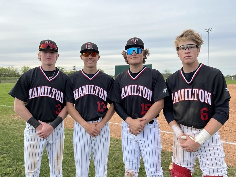 Hamilton Varsity Bulldog Baseball has been having a great season! In their last game against Goldthwaite they won with a score of 18-0. Their record is 12-9 (4-0). (Pictured L-R Cole Bauman, Bret Bauman, Bryson Tarpley, and Tucker Calcote)