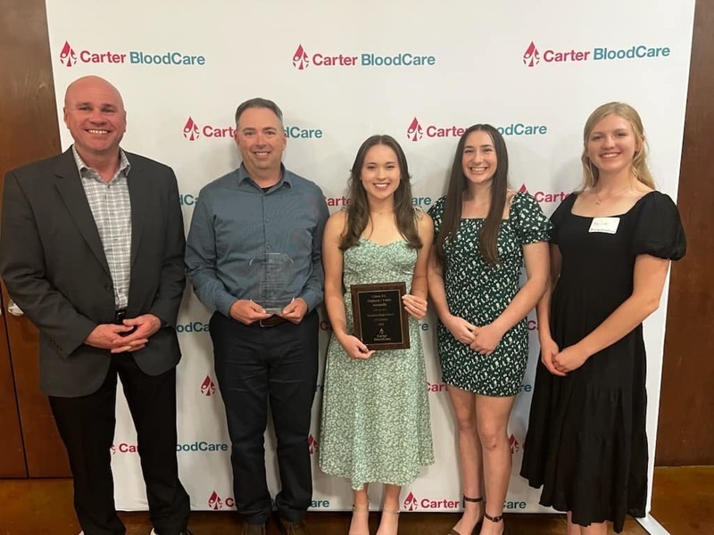 Hamilton High School National Honor Society for receiving an award for collecting the most units of blood for the 2A schools in the region! Our advisor, Mr. Miles Sellers, was also surprised as he was named the recipient of the Circle of Life award for his years of service since 2016. With the help of our GIVING community, our Honor Society blood drive has collected almost 1,100 units of blood! (Pictured L-R, Superintendent Dr. Harper Stewart, Miles Sellers, Seniors Morgan Aing, Cortland Mehaffey, and Mia Coker.)