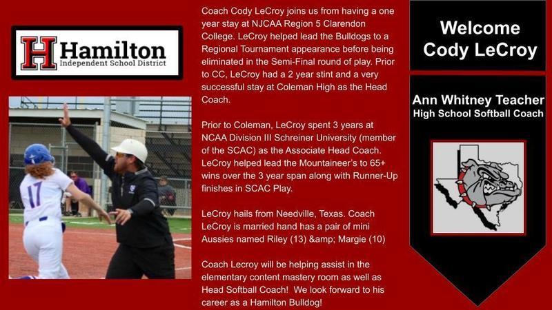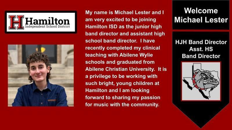 We have some new employees to welcome to HISD this semester. Welcome Cody LeCroy and Michael Lester to Hamilton ISD! Make sure you give them a Hamilton welcome if you see them out and about