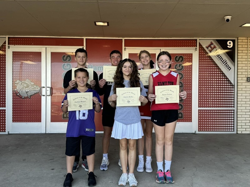 Students of the Month: Front Row (L to R) Caellum Wagner, Jaylind McBee, Harper Lackey