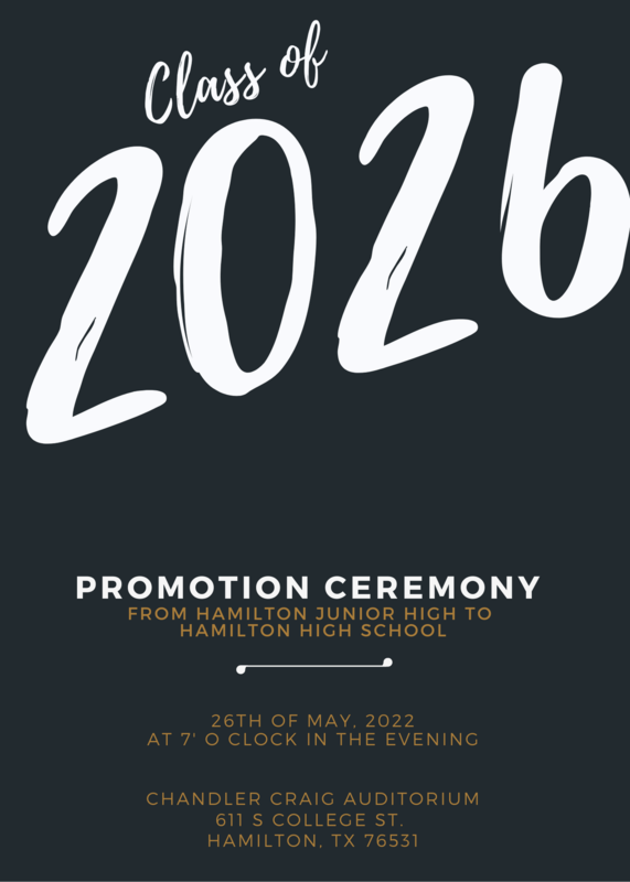 Thursday, May 27th at 7 pm - Promotion Ceremony starts at Chandler Craig Auditorium