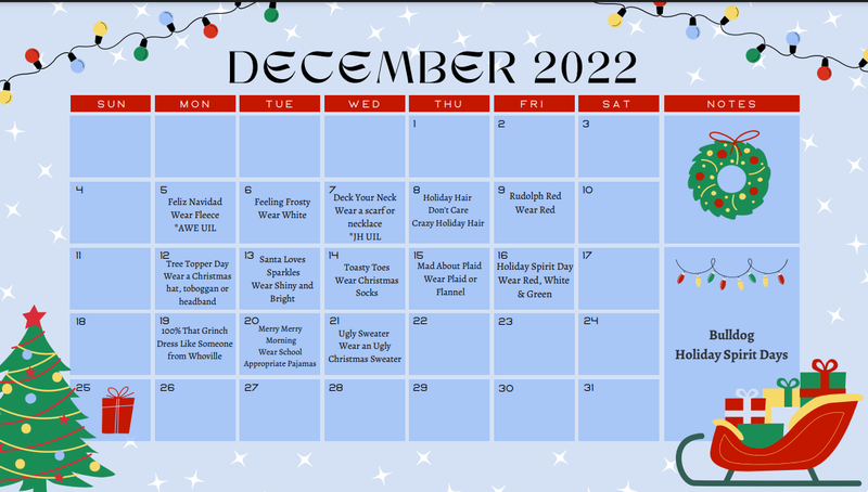 Holiday Spirit Days starting Dec 5th!